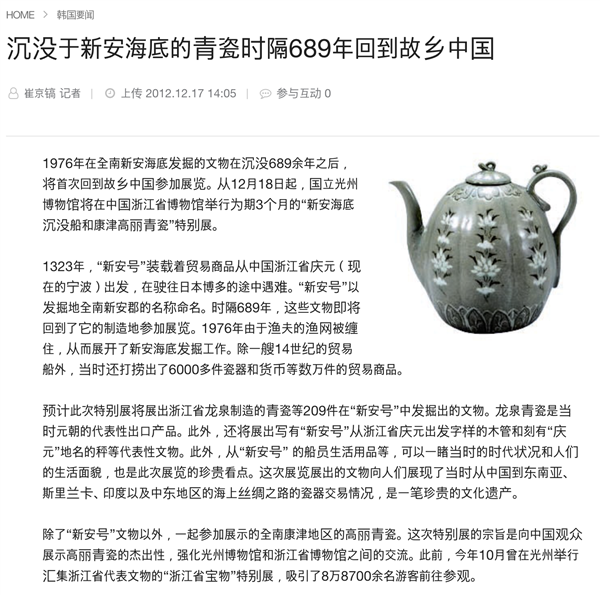 ”韩国地方日报2012年报道,他正在日本有田发觉了瓷土,